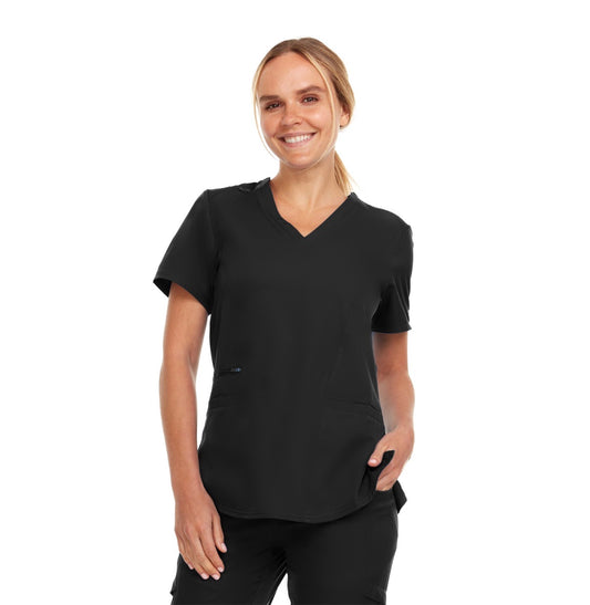 PRODUCT DETAILS: * Women's notched V-Neck top with bungee * Two front...